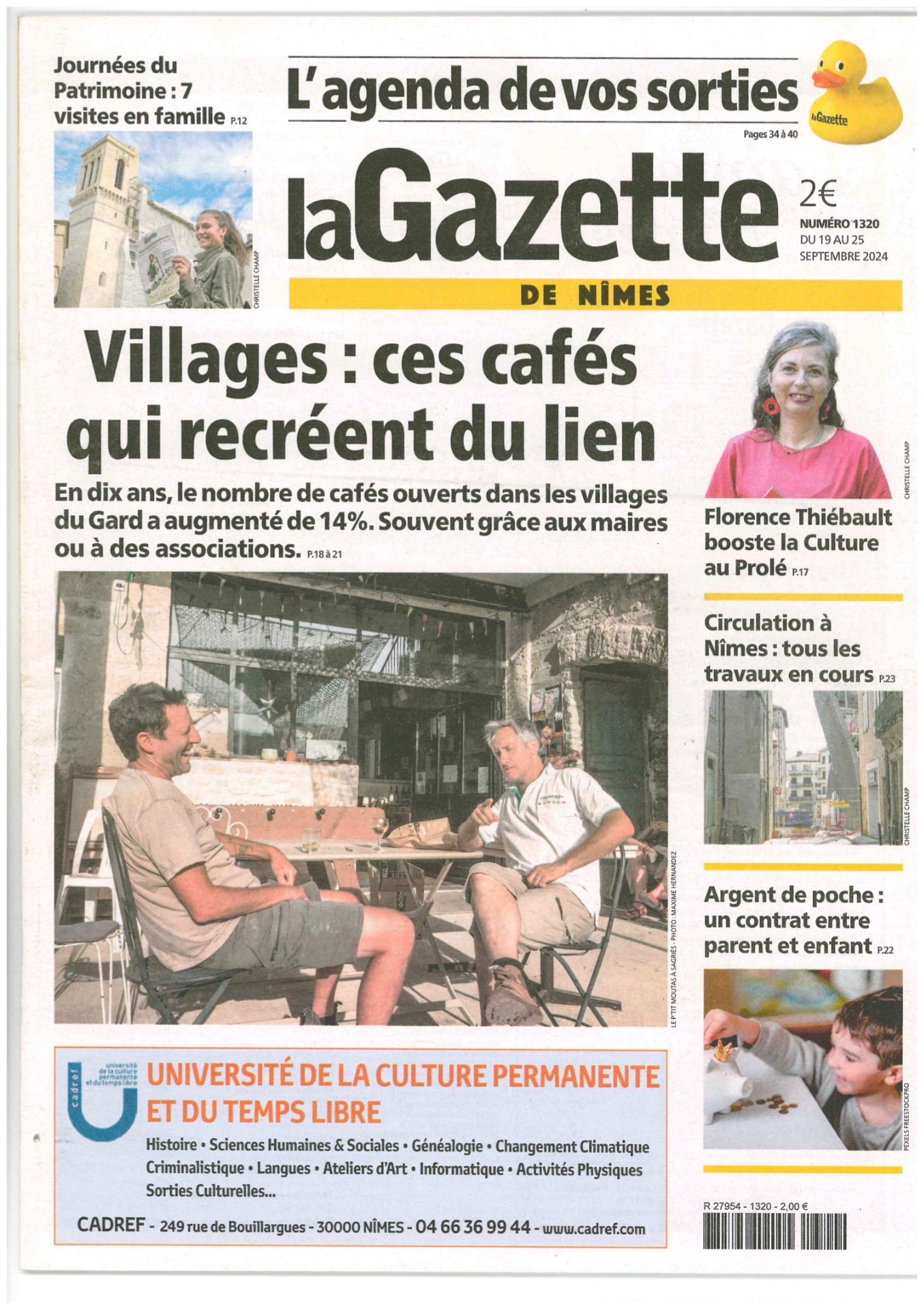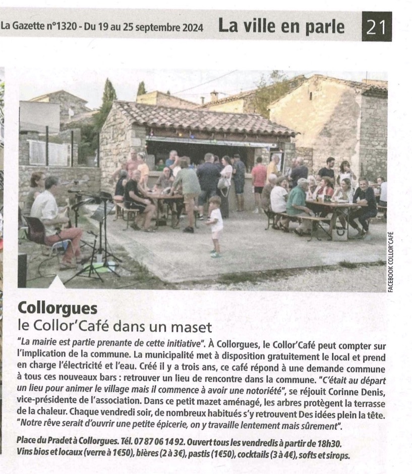 C'était la "une" de la Gazette de Nîmes, il y a quelques mois. Alors que les deux tiers des villages français n'ont plus de bistrot, on voit rouvrir aujourd'hui, grâce à la volonté des mairies ou des associations, des cafés de villages qui oeuvrent pour rétablir un lien social. "Ce sont des lieux où les générations se mélangent, où l'on peut se retrouver, discuter, échanger", écrit le journal, en constatant que sept nouveaux cafés ont ouvert ainsi leurs portes dans le Gard, dont le nôtre, Collor'Café, à Collorgues (Cf. notre rubrique On parle de nous)