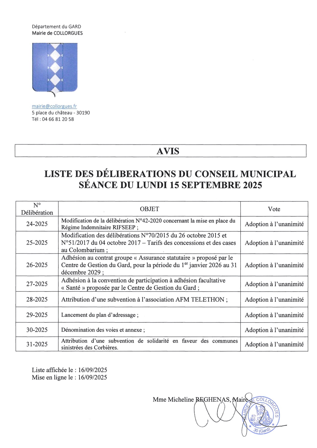- Délibération portant sur la régularisation de la vente Soulas/commune de Collorgues