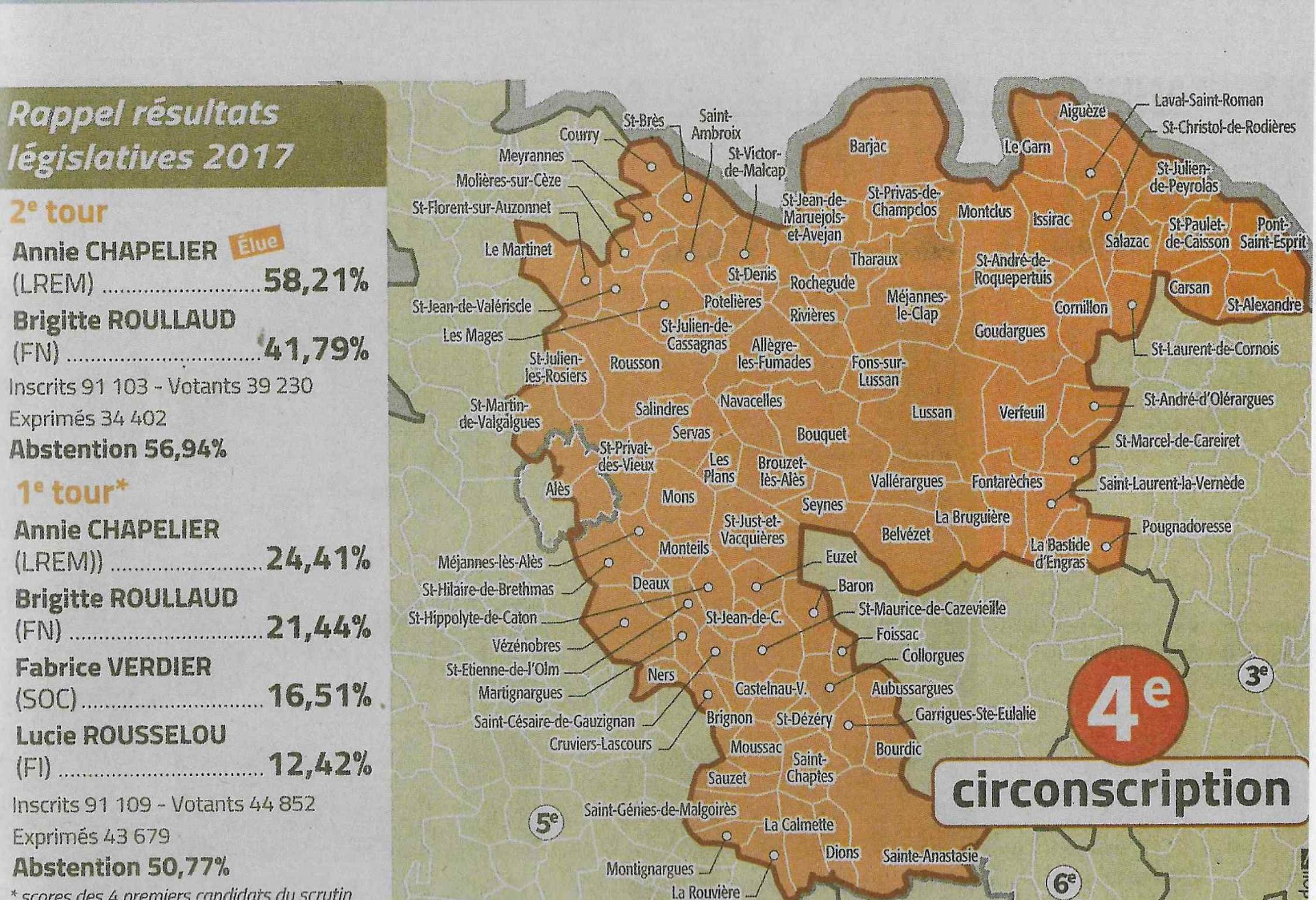 Les deux hommes s'affrontaient en duel pour le second tour. Le représentant de la majorité présidentielle, Monsieur Philippe RIBOT avait en effet échoué à se qualifier, récoltant 21, 58 % des suffrages sur l'ensemble de la 4 ème circonscription, où la députée sortante, Madame Annie CHAPELIER (élue en 2017 pour La République en Marche) avait choisi de ne pas se représenter.